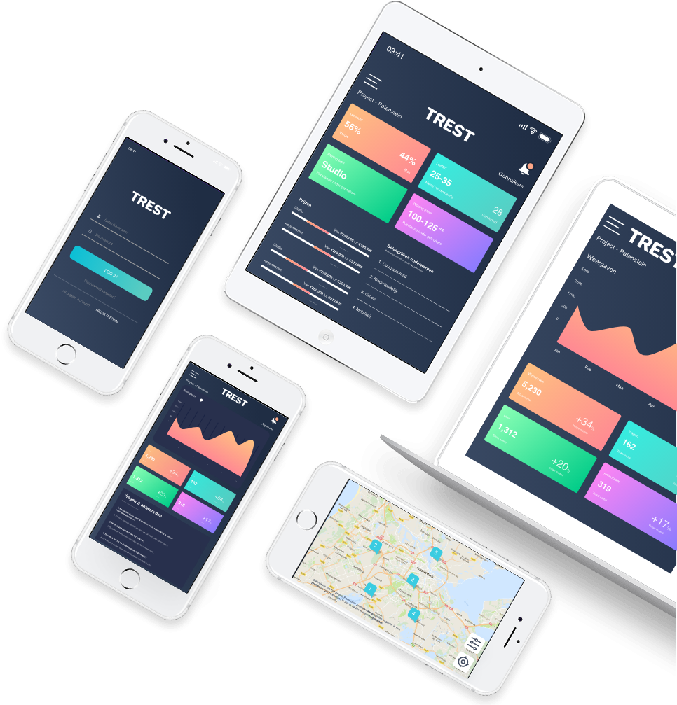 Businesspartners hebben de beschikking over een dashboard waar TREST de data presenteert van het project of zelfs overkoepelend over meerdere projecten.
